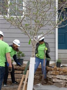 Volunteers help plant a treeWells calls the partnership between CSU and Pikes Peak Habitat a “fantastic collaboration.” He says, “It was surprising how easy it was to work with them and how open and welcoming and eager they were to partner with organizations in the community.”